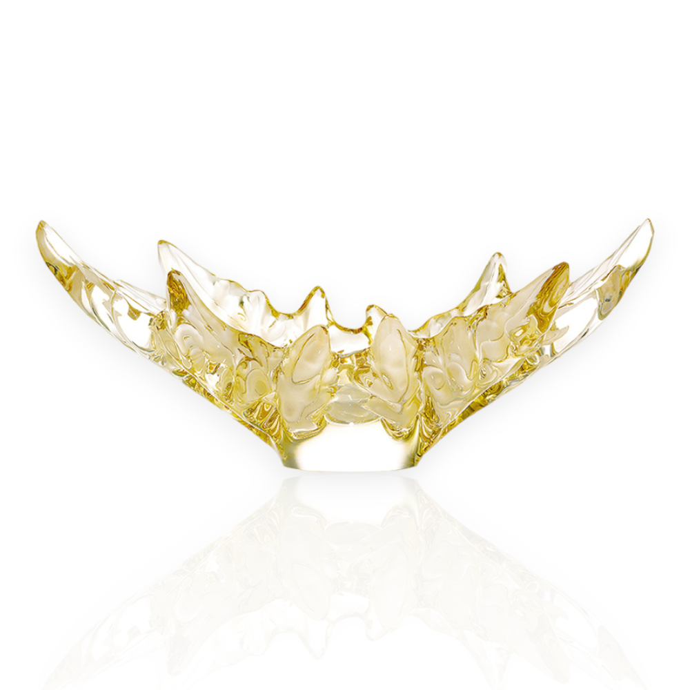 Centro de mesa con diseño de las hojas de cristal finamente grabadas que adornan el cuenco de los Campos Elíseos, diseñado por Marc Lalique en 1951.