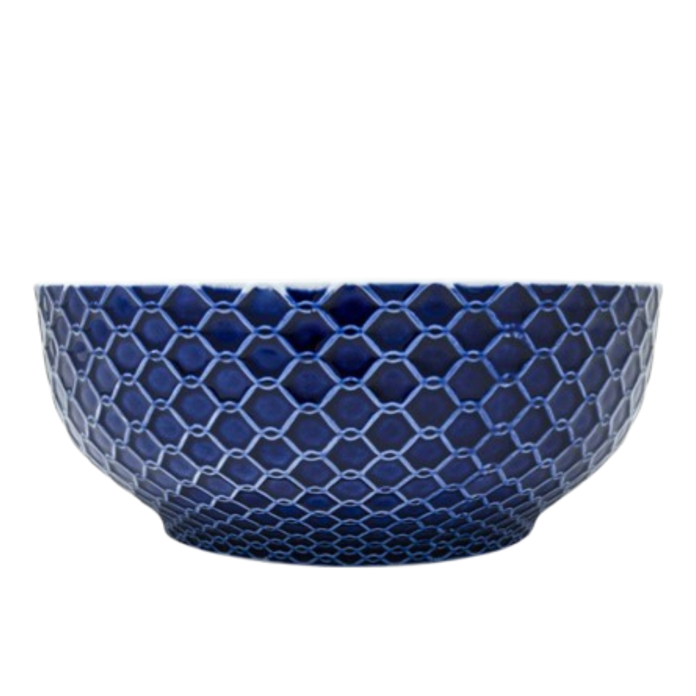 Ensaladera en azul cobalto perteneciente a la colección Rede, inspirada en las redes tradicionales gallegas.