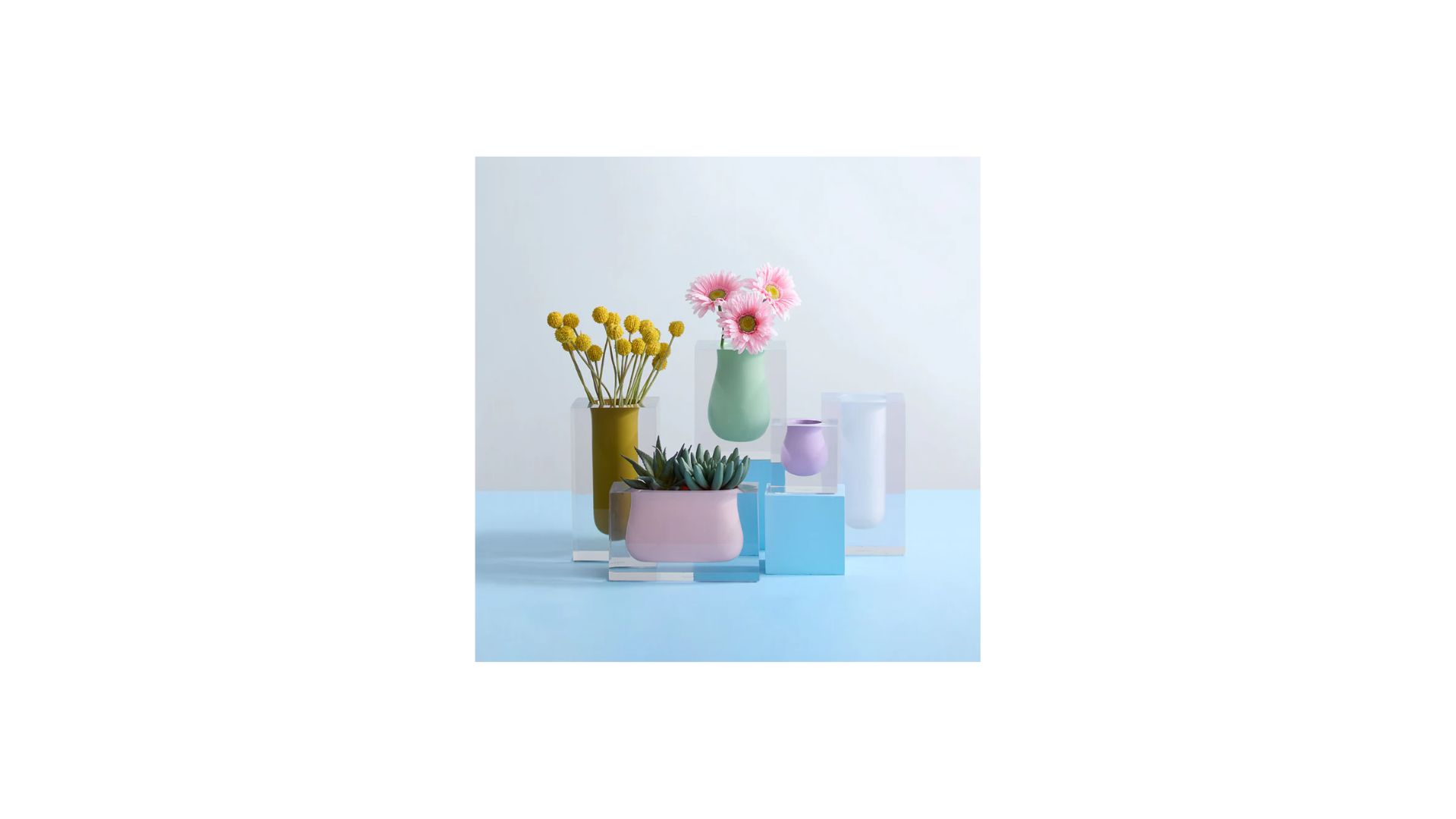 Una forma orgánica en un tono intenso o sombrío, suspendida dentro de un grueso cubo de acrílico transparente. Nuestros jarrones Bel Air son perfectos para ramos compactos y también son fabulosos como un objeto fascinante sin flores. Disponibles en varias formas y tamaños, destacan por sí solos y se destacan en múltiples: crea un centro de mesa vibrante con una línea de Mini Scoops o combina diferentes colores y formas para una decoración de mesa modernista.