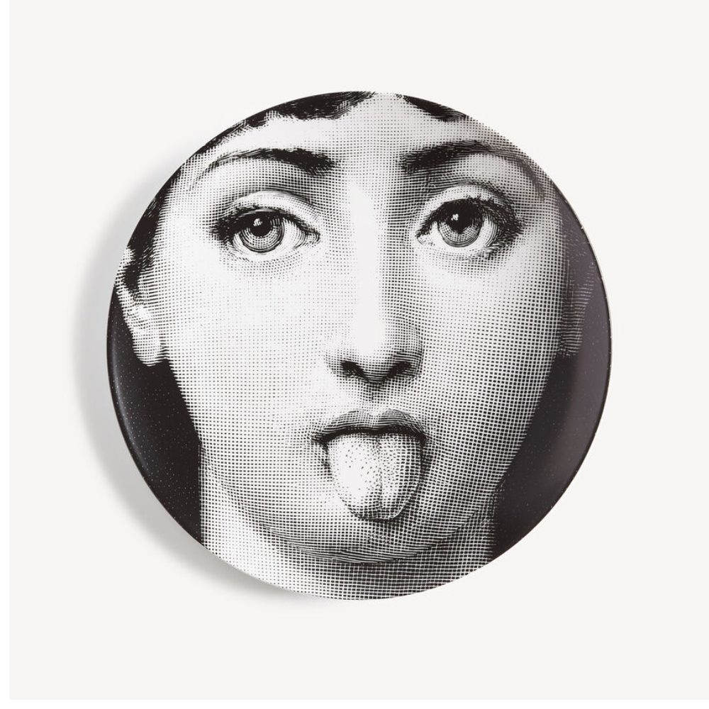 El rostro de la cantante de ópera Lina Cavalieri, musa de Piero Fornasetti, adorna este plato decorativo de porcelana para pared. Se trata de la primera decoración de la que luego se convertiría en la icónica serie «Tema e Variazioni»: una auténtica pieza de colección, que se presta a ser expuesta tanto sola como en creativas composiciones con los demás platos de la serie.