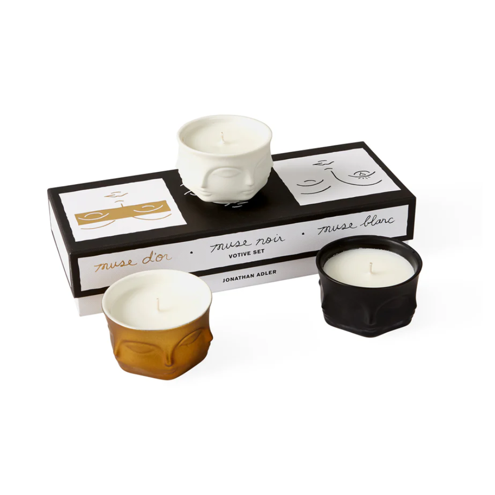 Con un trío de nuestros icónicos llamativos, cada juego de velas votivas Muse incluye nuestros tres aromas más lujosos.