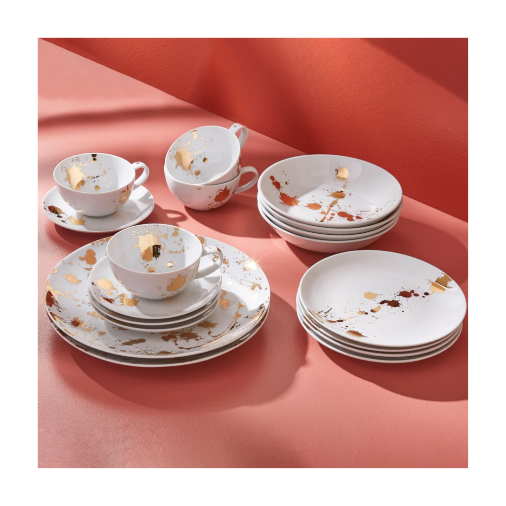 Nuestra colección 1948, que lleva el nombre de la temperatura a la que se funde el oro, incluye vajilla y vajilla clásicas de porcelana salpicadas de oro auténtico: el equilibrio perfecto entre lo atemporal y lo actual, lo formal y lo moderno, lo elegante y lo moderno. Lo suficientemente formal para una fiesta fabulosa, pero funcional para usarla como un lujo cotidiano. Combínala con nuestra tetera, azucarero y jarrita de leche 1948 para darle un toque de estilo.